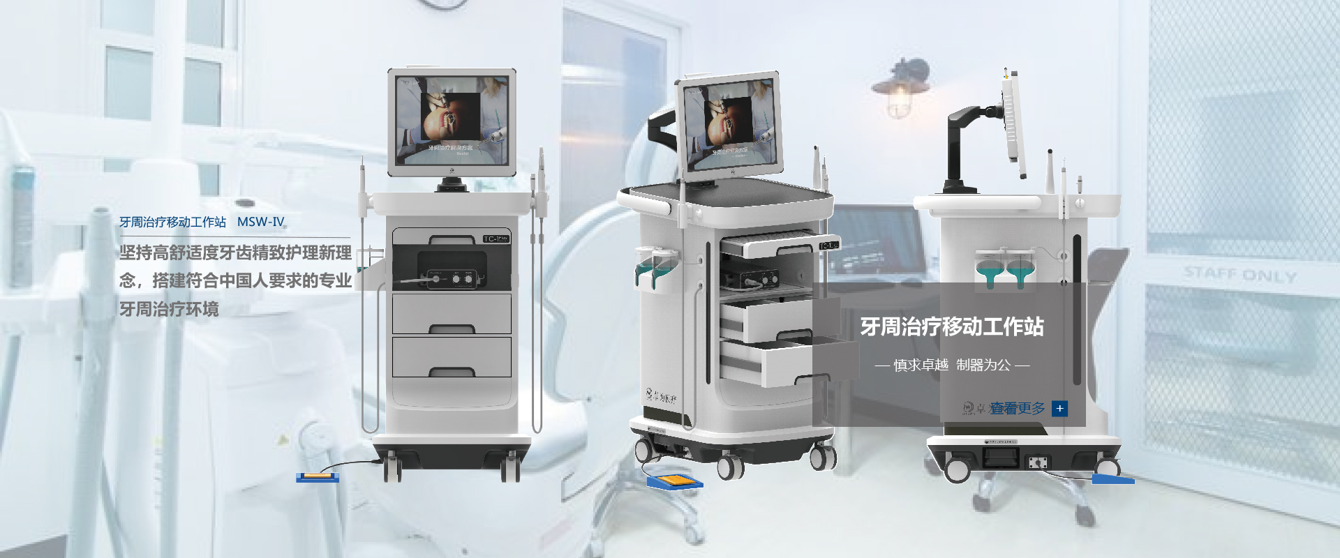 公司致力于磁致伸縮及數(shù)字影像技術(shù)在口腔醫(yī)療器械領(lǐng)域 的應(yīng)用,目前擁有3項(xiàng)發(fā)明專利、5項(xiàng)實(shí)用新型專利和2項(xiàng) 外觀專利。公司當(dāng)前主營產(chǎn)品為牙周治療移動工作站,具 體包括磁致伸縮·超聲潔牙機(jī)、高清晰度·數(shù)字口腔觀察儀 、全向轉(zhuǎn)動·多功能移動醫(yī)療推車及配套耗材。